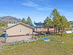 Stunning two-bedroom, two bath custom home with beautiful views of Curlew Lake. Step into this open layout with vaulted ceilings, large windows providing amazing views, new appliances, attached 3 car garage, two shops/storage sheds with separate power, solar and generator for backup.