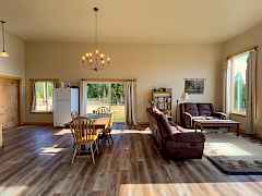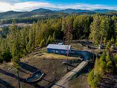 Situated at the end of a private road just 4 miles from Chewelah, these 11.84 acres deliver sweeping vista views with southern exposure and genuine end-of-road privacy seldom found this close to town. Easy access keeps it practical year-round, and 49 Degrees North is only 11 miles out when ski season calls. The single-level 3BR/2BA home suits the setting well, with an open floor plan, radiant floor heating, high ceilings, and large windows that put those views to work. Hickory kitchen cabinets and a wood heat/cooking stove add character and keep things practical. Multiple outbuildings and animal shelters are already in place for livestock, equipment, or storage.