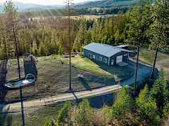Situated at the end of a private road just 4 miles from Chewelah, these 11.84 acres deliver sweeping vista views with southern exposure and genuine end-of-road privacy seldom found this close to town. Easy access keeps it practical year-round, and 49 Degrees North is only 11 miles out when ski season calls. The single-level 3BR/2BA home suits the setting well, with an open floor plan, radiant floor heating, high ceilings, and large windows that put those views to work. Hickory kitchen cabinets and a wood heat/cooking stove add character and keep things practical. Multiple outbuildings and animal shelters are already in place for livestock, equipment, or storage.