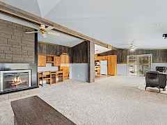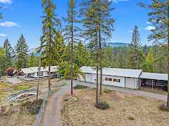 A must see for the buyer that needs large shops! Spacious 1755 sq. ft. manufactured home nestled on 37.7 picturesque acres, surrounded by mature timber and featuring a peaceful stream. This property boasts a large, covered deck perfect for outdoor gatherings, two expansive shops—one equipped with over 2100sq ft that includes a bathroom, cement floor, loft and lean-to. The second can be a barn or shop with 1200 sq. ft. of storage space. Fenced yard area with drilled well and two septic systems. The home's open floor plan offers plenty of room to relax and entertain, with new carpet in the living room, economical heat pump and pellet stove. Nature lovers will appreciate the abundance of wildlife and park-like setting.