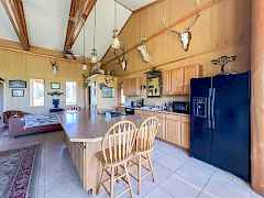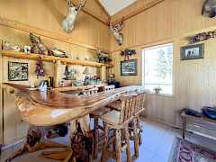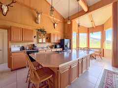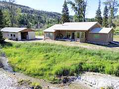 Spectacular setting for this open concept frame built home with most picturesque views looking the length of Bonaparte meadows. Bonaparte Creek runs right in front of the home. Beautiful woodwork throughout with high vaulted ceilings and beams. Corner fireplace (functional but unfinished) as well as a large corner bar. Huge open kitchen with large island. Eating ares with large windows to take in the view. All three bedrooms have full baths plus a 1/2 bath off the main room. Ceramic tile throughout, Easy 1 level living. Huge drive-through shop also with 3/4 bath. Close to Bonaparte Lake & easy access to miles & miles of back-country. This one has it all.