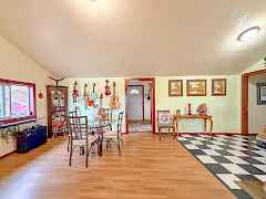 Your perfect home or summer retreat! 2bd/1bth single level house on 2.98 acres, w/ small piece of Jumpoff Joe Lake frontage and close to the public boat launch! Home boasts vaulted ceilings throughout the living area, nice sized primary bedroom with dbl closets, and updated kitchen that leads to your oversized sunroom with expansive windows looking out towards the lake! Bluetooth projector screen and surround sound system for your watching experience. Outside you have a large deck that is perfect for entertaining w/ covered patio & bbq areas, great views, free standing hot tub, and a private setting. Find plenty of room for all your toys! Metal 12x40' carport, framed 22x40' RV storage, 12x24' Heated Workshop, and another 10x24' storage shed! Develop the lake access for further enjoyment!
