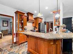 Beautiful custom-built home w/covered patio overlooking the pond between the 14th & 15th fairway of the Chewelah Golf & Country Club. Features include natural slate & hardwood floors, & expansive living room w/stacked rock gas log fireplace. Classic natural cherry cabinets, granite counters, high-end stainless-steel appliances & pantry. Primary Bedroom on main has soaking tub & custom tile walk-in shower. Main floor also includes a den/office w/custom cabinetry, laundry room, & an upstairs bonus room affords over 500 sq ft of optional living space. Enjoy the professionally landscaped yard w/exposed aggregate walkways, back up auto generator & paved driveway. There's an oversized 2-car garage, plus a 22 x 30 fully finished detached shop for all your toys. Golf Course living at its best!