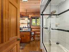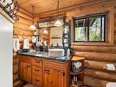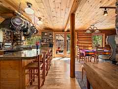This beautiful home sits amongst a variety of tree species which creates a magical woodland retreat. Enjoy the sights and sounds of beautiful Grouse Creek as it meanders through the property. The large, custom built log cabin offers lots of space for large groups, featuring a third floor, full loft with room for four queen sized beds. The second floor features two bedrooms, an office, bathroom and laundry room. A beautiful, two bedroom guest house located above the garage, allows for a very private and comfortable space for your guests. Back inside, the main floor offers an open space living room, informal dining room and a dream (Chef's) kitchen with walk in pantry. The basement features a roomy guest suite featuring a bedroom/tv sitting room. Lots of cozy space in this homestead.