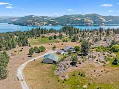 Make this your forever home. 100 Acres overlooking Lake Roosevelt. Custom designed ranch style home exquisitely decorated throughout. Walk into the large living area with gas fireplace and built in cabinetry, Vaulted ceilings with large windows to take in all the views from this private retreat close to Kettle Falls and Colville. Open stairway leads to spacious open hobby room which could make into additional bedroom. Large primary bedroom with private suite bath and walk in closet. Bright Kitchen with island and lots of cabinetry including built in desk. Just off the kitchen you will find spacious laundry room to backyard. Additional sitting room off kitchen for relaxation. Detached 2 car garage 30 x 30 plus Large 36 x 40 insulated shop with 12ft and 13ft doors. Wired for generator