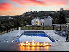 Discover breathtaking views & modern elegance in this stunning 4-bedroom, 3-bath home situated on over 6 acres overlooking the Colville Valley. Sunlight floods through expansive picture windows, highlighting the kitchen w/concrete counters, gas range & walk in pantry, dining area & vaulted living room. The main floor boasts a spacious primary suite w/a luxurious tiled walk-in dual head shower, double sinks & closet w/laundry facilities conveniently located nearby. Upstairs, you'll find three bedrooms, loft area, den/office & full bath. The spacious unfinished basement is insulated & wired w/garage access. There is also a heated saltwater pool w/gas open flame firepit, hot tub, deck & large lawn.