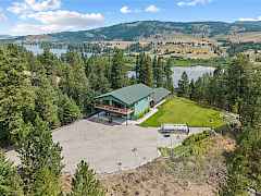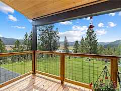 This Gorgeous home was recently built in 2024. With lake and beautiful territorial views. Very peaceful setting on 5+ acres. With additional detached one bedroom cabin (built in 2021). Main home has custom modern features throughout, including many upgrades to provide comfort and convienence year round. Covered deck on both sides are 12X32 each w/pine soffits. Spiral staircase takes you into garage which is fully finished along with office or rec area, huge laundry room w/ hickory cabinets, 3/4 bath and extra boutique space. 2 man doors for easy access on lower level and breezeway to detached cabin. Lake Curlew has private community boat launch right down the road. Adjacent 5+ acre property w/Shop also for sale