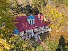 A one-of-a-kind property opportunity on 14.61 acres w/creek frontage awaits. This 2973 sq ft 4BR/4BA Victorian style home is full of charm and just needs the right buyer with vision to make it even better. The front covered porch harkens back to yester year with views of grape arbors, orchard, willows over the creek and abundant wildlife. Inside, the home features formal living and dining rooms centered around a custom fireplace. The full basement offers partially finished space, laundry, and room for future expansion. A wood furnace supplements the electric forced-air system for efficient, flexible heating. A spacious shop and multiple outbuildings include an upstairs studio apartment and a certified commercial kitchen/food-processing space complete with a walk-in cooler.